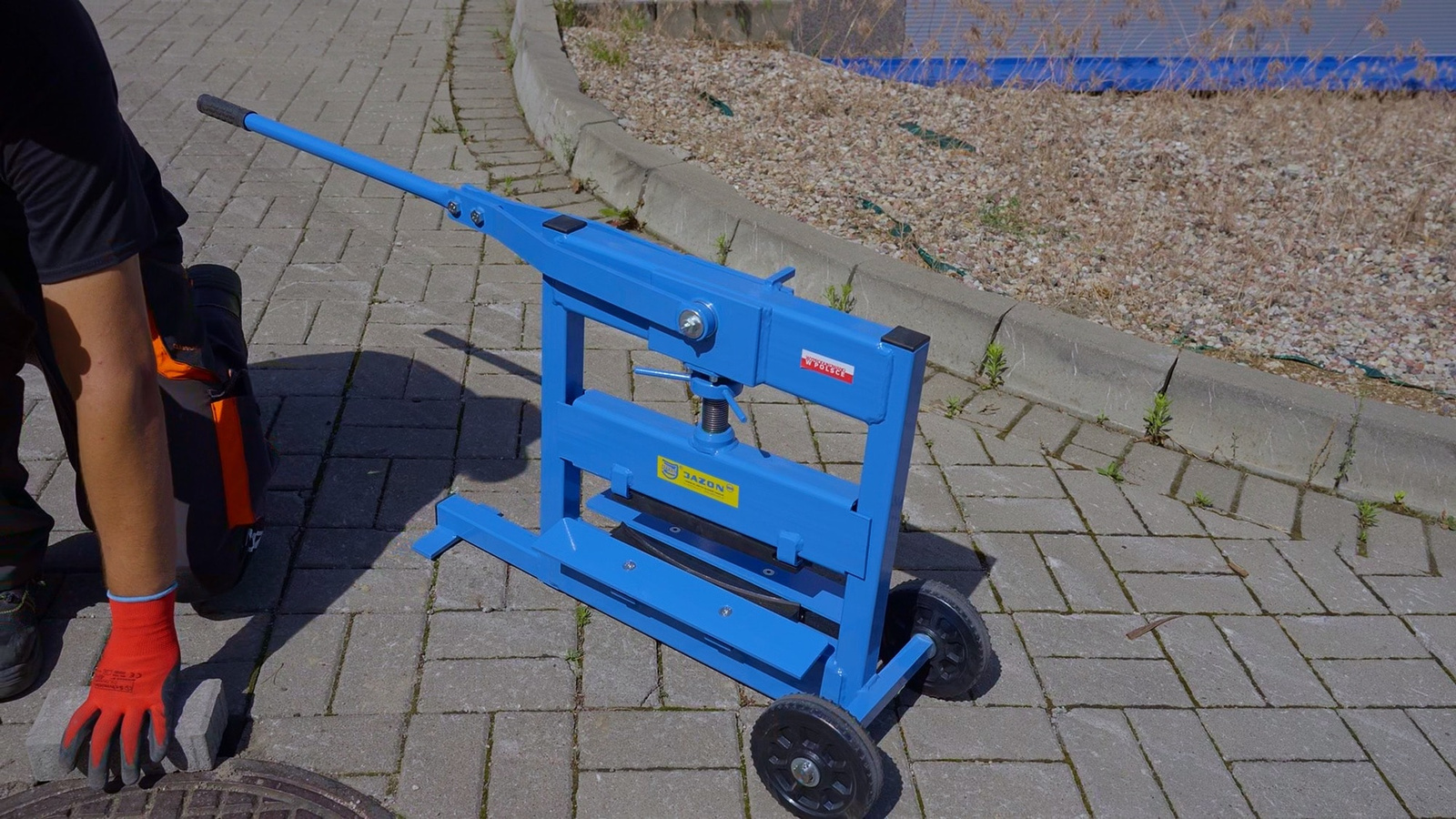 GILOTYNA DOSKONALE SPRAWDZI SIĘ PRZY CIĘCIU KOSTKI BRUKOWEJ, PŁYTEK CHODNIKOWYCH, BLOCZKÓW FUNDAMENTOWYCH, KRAWĘŻNIKÓW CZY CEGŁY.
