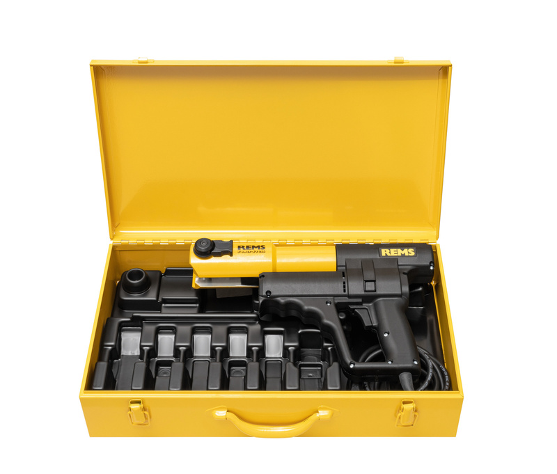ELEKTROHYDRAULICZNA PRASA PROMIENIOWA 32kN POWER-PRESS BASIC-PACK UZNANEJ NIEMIECKIEJ MARKI REMS TO PORĘCZNE, UNIWERSLANE URZĄDZENIE Z SYGNAŁEM WYŁĄCZENIA, WYKORZYSTYWANE DO POŁĄCZEŃ ZACISKOWYCH WE WSZYSTKICH POWSZECHNIE UŻYWANYCH SYSTEMACH, URZĄDZNIE TO GWARANCJA BŁYSKAWICZNEGO, PREZYCYJNEGO I PEWNEGO ZACISKANIA. MASZYNA POSIADA FUNKCJĘ AUTOMATYCZNEGO RYGLOWANIA CĘGÓW ZACISKOWYCH.