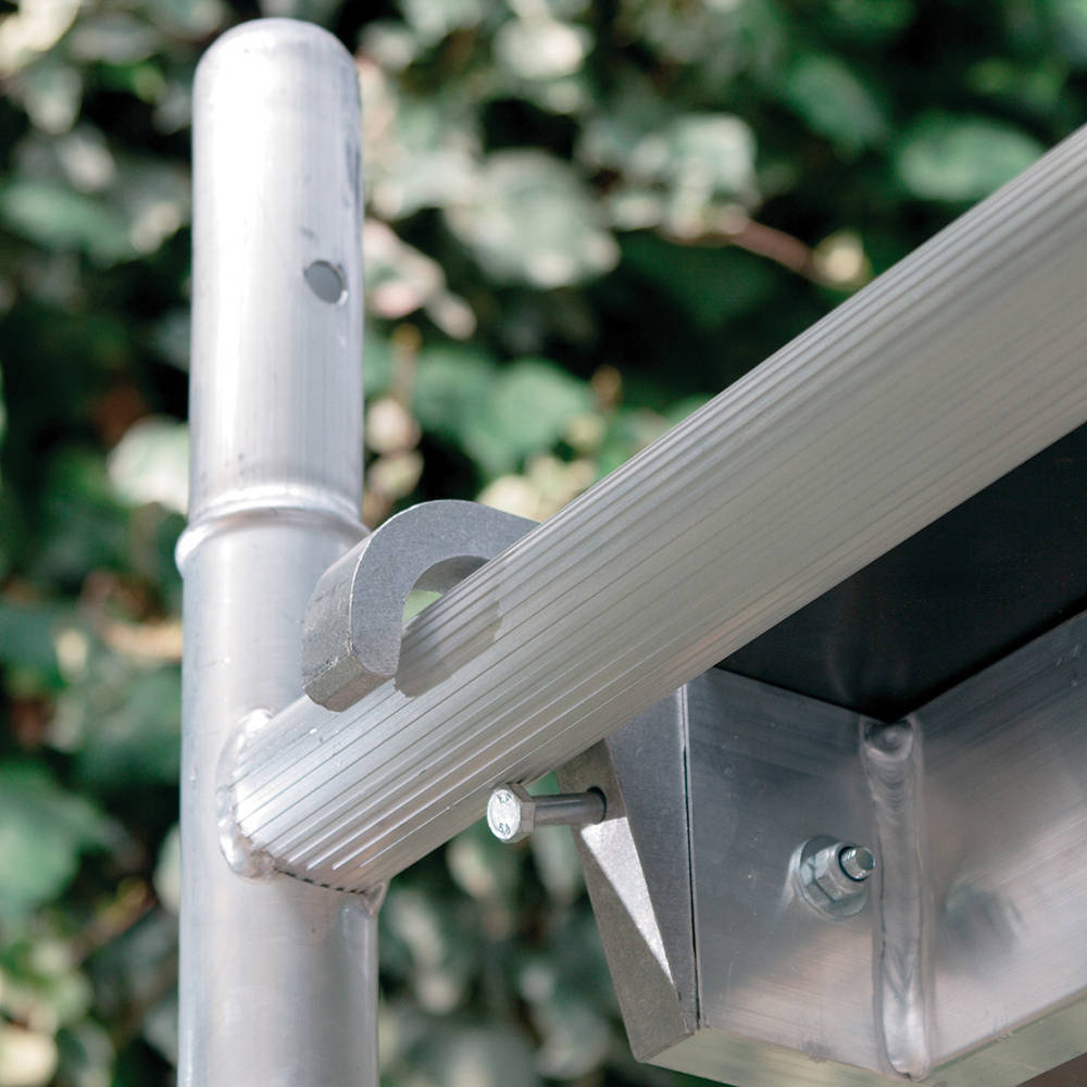 - MOCOWANIE SZCZEBLI WYKONANE ZE STALI NIERDZEWNEJ BEZ SPAWANIA, CO ZWIĘKSZA STABILNOŚĆ WIEŻY O 50% I PRZEDŁUŻA JEGO ŻYWOTNOŚĆ;
