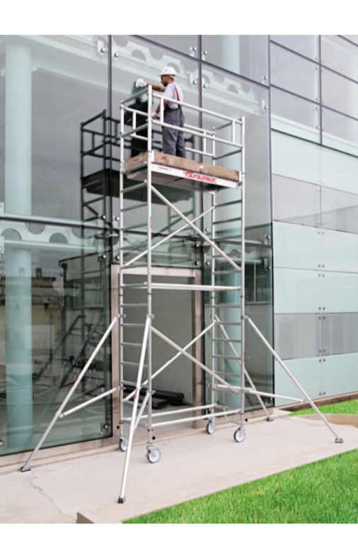 POJEDYNCZE WIEŻE JEZDNE O SZEROKOŚCI 0,75 M I DŁUGOŚCI 1,8 M - RUSZTOWANIE PRZEJEZDNE RENOMOWANEGO PRODUCENTA FIRMY FARAONE. WYKONANE Z WYSOKIEJ JAKOŚCI ALUMINIUM, JEST LEKKIE, STABILNE I PROSTE  W MONTAŻU, A PO ZŁOŻENIU ŁATWE W PRZECHOWYWANIU. WYPOSAŻONE W 4 KOŁA, DZIĘKI KTÓRYM WIEŻA JEST MOBILNA I CZTERY PRZYKRĘCANE PODPORY, KTÓRE GWARANTUJĄ STABILNOŚĆ I SPOKÓJ PODCZAS PRACY. IDEALNE DO PRAC MAGAZYNOWYCH, MONTAŻOWYCH, BUDOWLANYCH, WSZĘDZIE TAM GDZIE POTRZEBNE JEST WYKONANIE PRAC NA WYSOKOŚCI W KOMFORTOWYCH I BEZPIECZNYCH DLA UŻYTKOWANIA WARUNKACH.