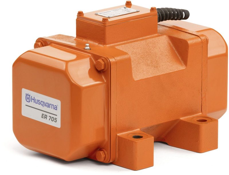 WIBRATOR ZEWNĘTRZNY ZASILANY SIECIOWO MODEL ER 705 RENOMOWANEGO PRODUCENTA FIRMY HUSQVARNA O NORMALNEJ PRĘDKOŚCI PRACY I REGULOWANEJ WYSOKIEJ WARTOŚCI SIŁY ODŚRODKOWEJ ZAPEWNIA BARDZO DOBRE EFEKTY ZAGĘSZCZANIA BETONU. ZAPROJEKTOWANE DO PRACY ZARÓWNO W POZIOMIE JAK I PIONIE, DZIĘKI CZEMU URZĄDZENIE JEST BARDZO UNIWERSLANE I NADAJE SIĘ DOSKONALE DO CIĘŻKICH ZADAŃ W ZAKŁADACH PRODUKCJI PREFABRYKATÓW, CZY PRZY ROZŁADUNKU SILOSÓW.
