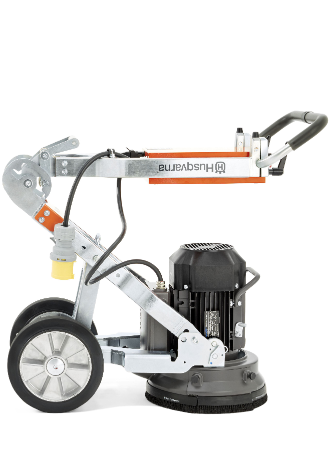 SZLIFIERKA PODŁOGOWA PG 280  MARKI HUSQVARNA TO JEDNODYSKOWA MASZYNA SZLIFUJĄCA, KTÓRĄ MOŻNA SZYBKO PRZYSTOSOWAĆ DO SZLIFOWANIA KRAWĘDZI PO OBU STRONACH. STWORZONA DO SZLIFOWANIA SZPACHLÓWKI, WARSTW EPOKSYDU, FARBY CZY KLEJU. SZEROKOŚĆ ROBOCZA 280MM WYSTARCZA DO WYDAJNYCH PRAC NA ŚREDNIEJ WIELKOŚCI POWIERZCHNIACH BETONOWYCH. ERGONOMICZNA BUDOWA UŁATWIA PRACĘ, SAMA MASZYNA JEST PROSTA I WYGODNA W OBSŁUDZE. KOMPAKTOWA BUDOWA I SKŁADANA RĄCZKA UŁATWIA TREANSPORT I PRZECHOWYWANIE.