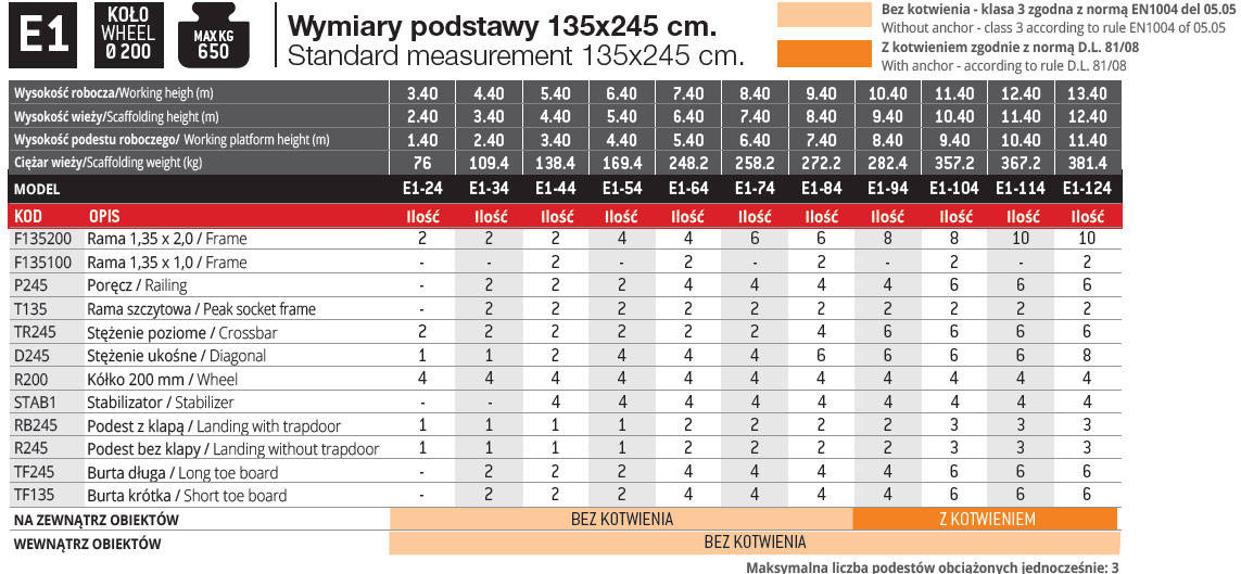 - WYSOKOŚĆ ZALEŻY OD RODZAJU KONFIGURACJI. MAKSYMALNIE DO 8 METRÓW, BEZ KOTWIENIA NA ZEWNĄTRZ I 12 METRÓW, BEZ KOTWIENIA WEWNĄTRZ;