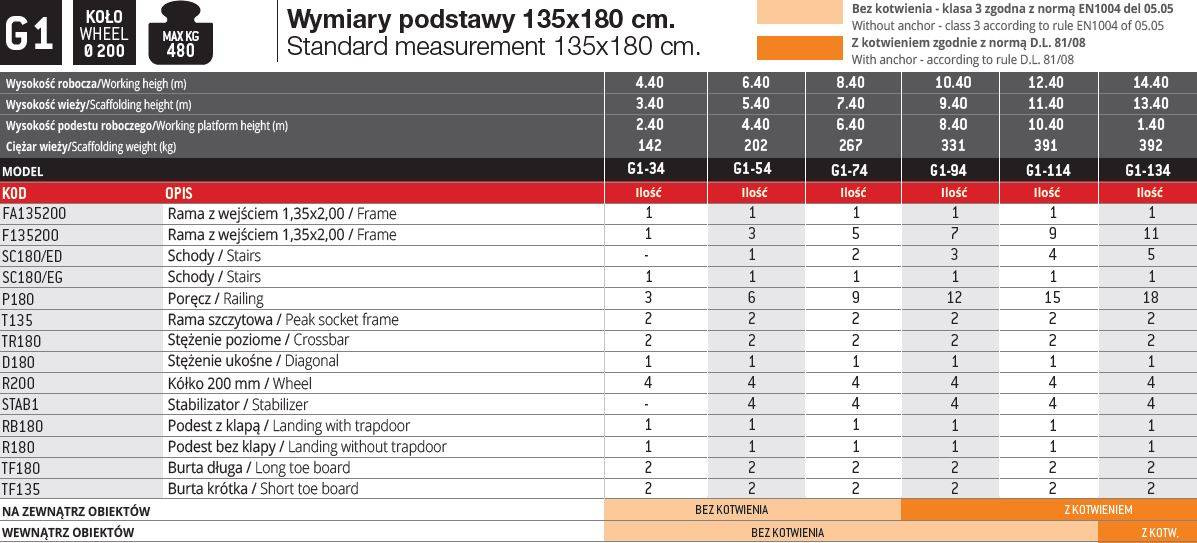 RUSZTOWANIE POJEDYNCZE JEZDNE ZE SCHODAMI WEWNĘTRZNYMI FARAONE TOP SYSTEM 135x180CM G1-54 6,4M