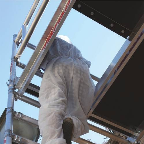 • ZESTAW SCHODÓW Z PORĘCZĄ UMOŻLIWIA SCHODZENIE PRZODEM, POPRAWIAJĄC BEZPIECZEŃSTWO I KOMFORT PRACY NA WYSOKOŚCI;