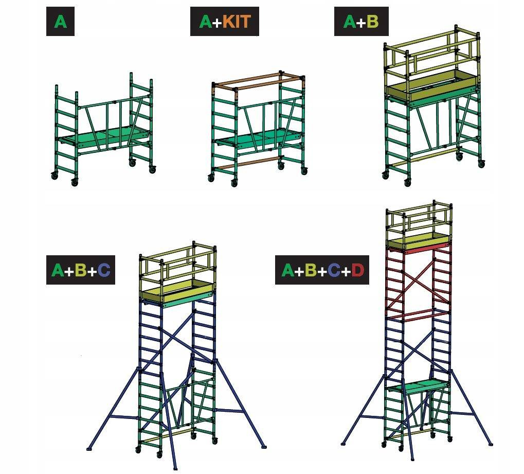 WIEŻE JEZDNE FARAONE COMPACT O WYMIARACH 75 X 180 CM - SĄ MOBILNE I BEZPIECZNE, SŁUŻĄ DO WYKONYWANIA PRAC WYSOKOŚCIOWYCH. WIEŻE SŁUŻĄ DO WYKONYWANIA PRAC WEWNĄTRZ BUDYNKU NP. BUDOWLANYCH, KONSERWACYJNYCH, MALARSKICH ORAZ WYKOŃCZENIOWYCH. ICH ZALETĄ JEST LEKKA KONSTRUKCJA ORAZ SZYBKI MONTAŻ I DEMONTAŻ BEZ UŻYCIA NARZĘDZI. KONSTRUKCJA WIEŻY ZBUDOWANA JEST Z RURY ALUMINIOWEJ O ŚREDNICY 50 MM.