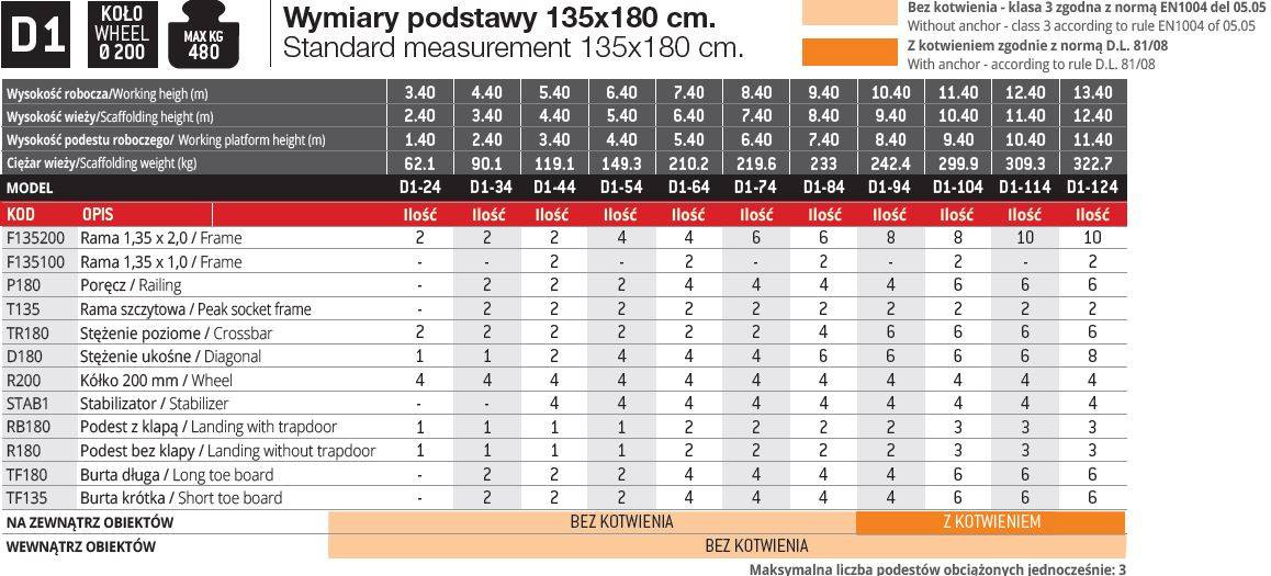 WIEŻE JEZDNE TOP SYSTEM 135 x 180 CM.