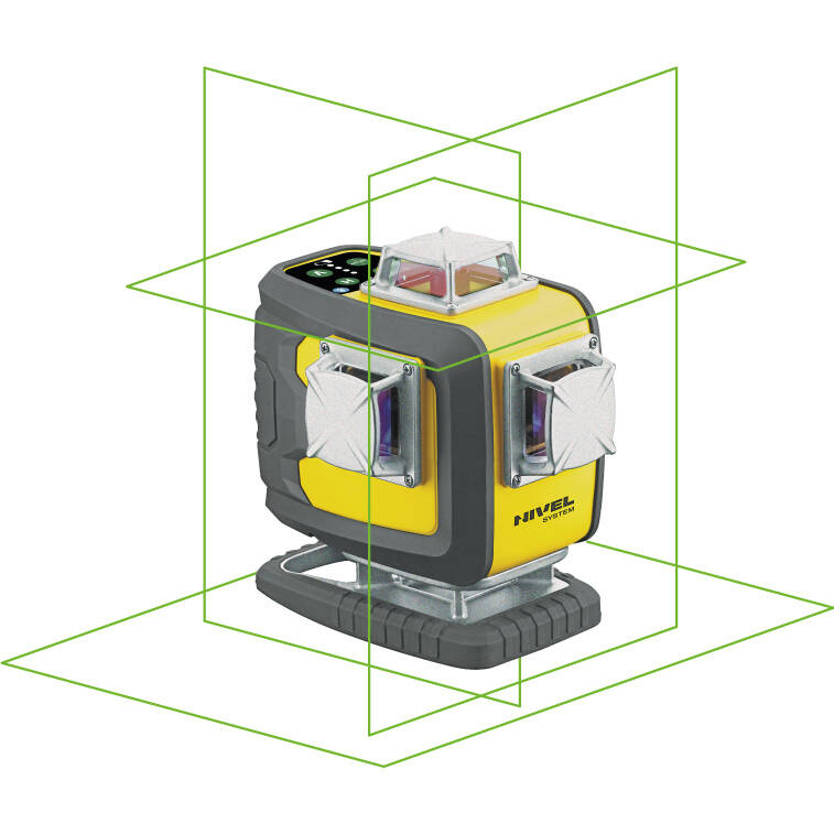 NIVEL SYSTEM CL4D-G TO NOWOCZESNY, WIELOZADANIOWY LASER KRZYŻOWY 4D Z SUPER WIDZIALNĄ WIĄZKĄ ZIELONEGO LASERA (DŁUGOŚĆ FALI 515NM). MULTILASER WYZNACZA NA PŁASZCZYŹNIE 4 IDEALNIE SPOZIOMOWANE LINIE ODNIESIENIA (2 W PIONIE I 2 W POZIOMIE), KAŻDA W ZAKRESIE 360°.