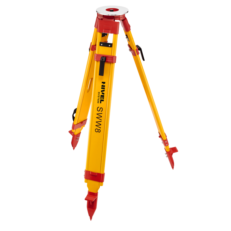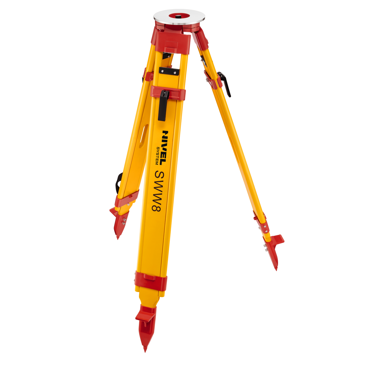 NIVEL SYSTEM SWW8 - DREWNIANY STATYW DLA TACHIMETRÓW, TEODOLITÓW. NOGI WYKONANE Z TWARDEGO DREWNA, POKRYTO TWORZYWEM SZTUCZNYM. BARDZO ODPORNE NA DZIAŁANIE CZYNNIKÓW ATMOSFERYCZNYCH I WODY. CZĘŚCI METALOWE MALOWANE PROSZKOWO. STATYW POSIADA ZACISKI ORAZ WYCIĘTE W NOGACH UCHWYTY DO PRZENOSZENIA.