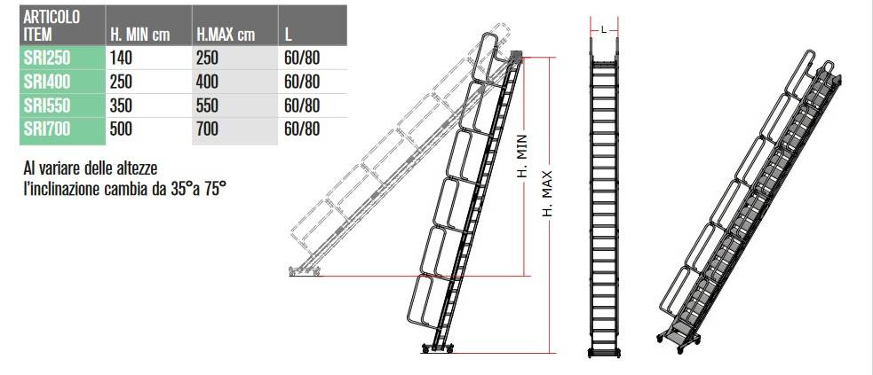 SCHODY DOSTĘPOWE Z REGULOWANYM KĄTEM NACHYLENIA FARAONE SRI700.