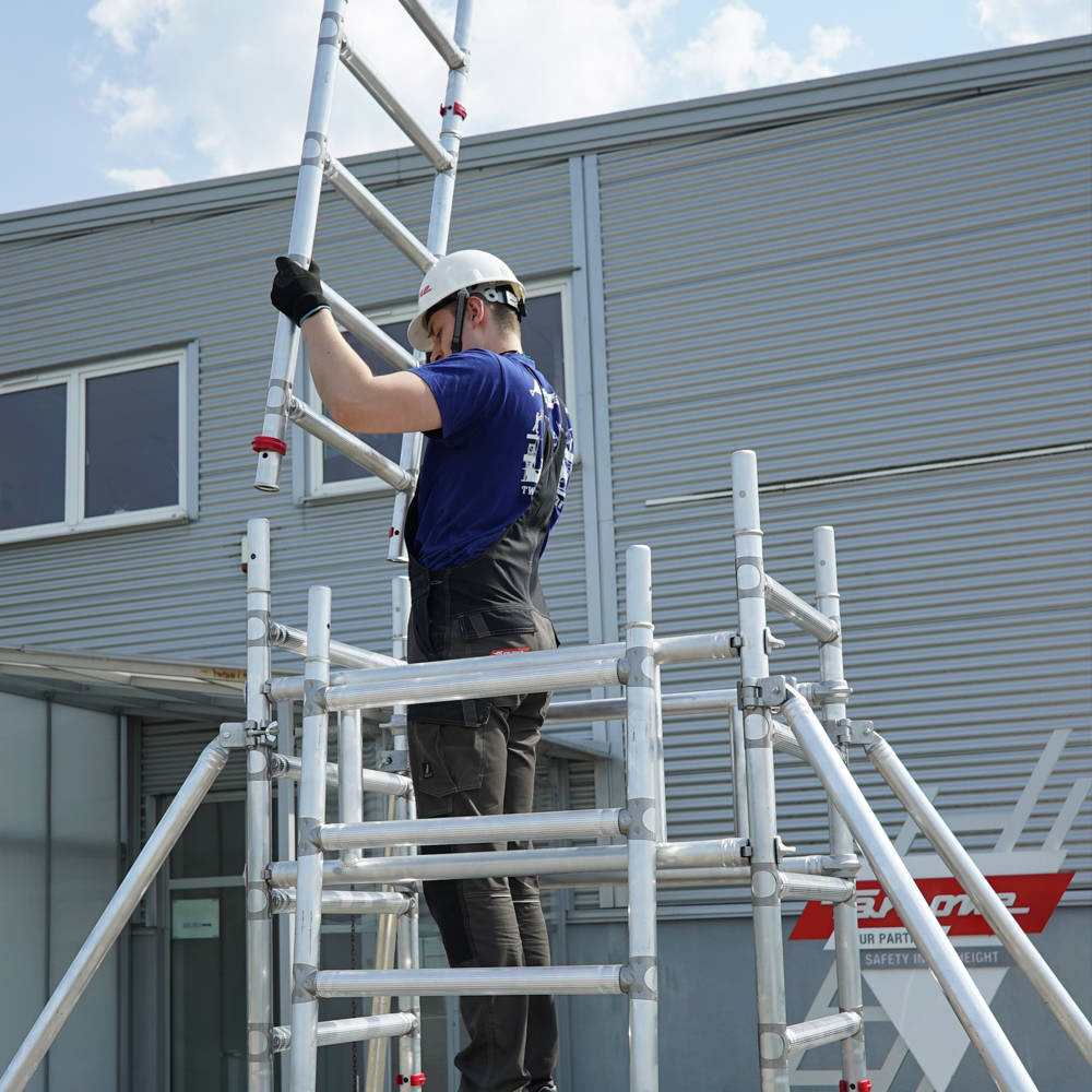 KOMPAKTOWA WIEŻA JEZDNA TOP SYSTEM DO PRAC NA WYSOKOŚCI O WYMIARACH 75 X 105 CM.