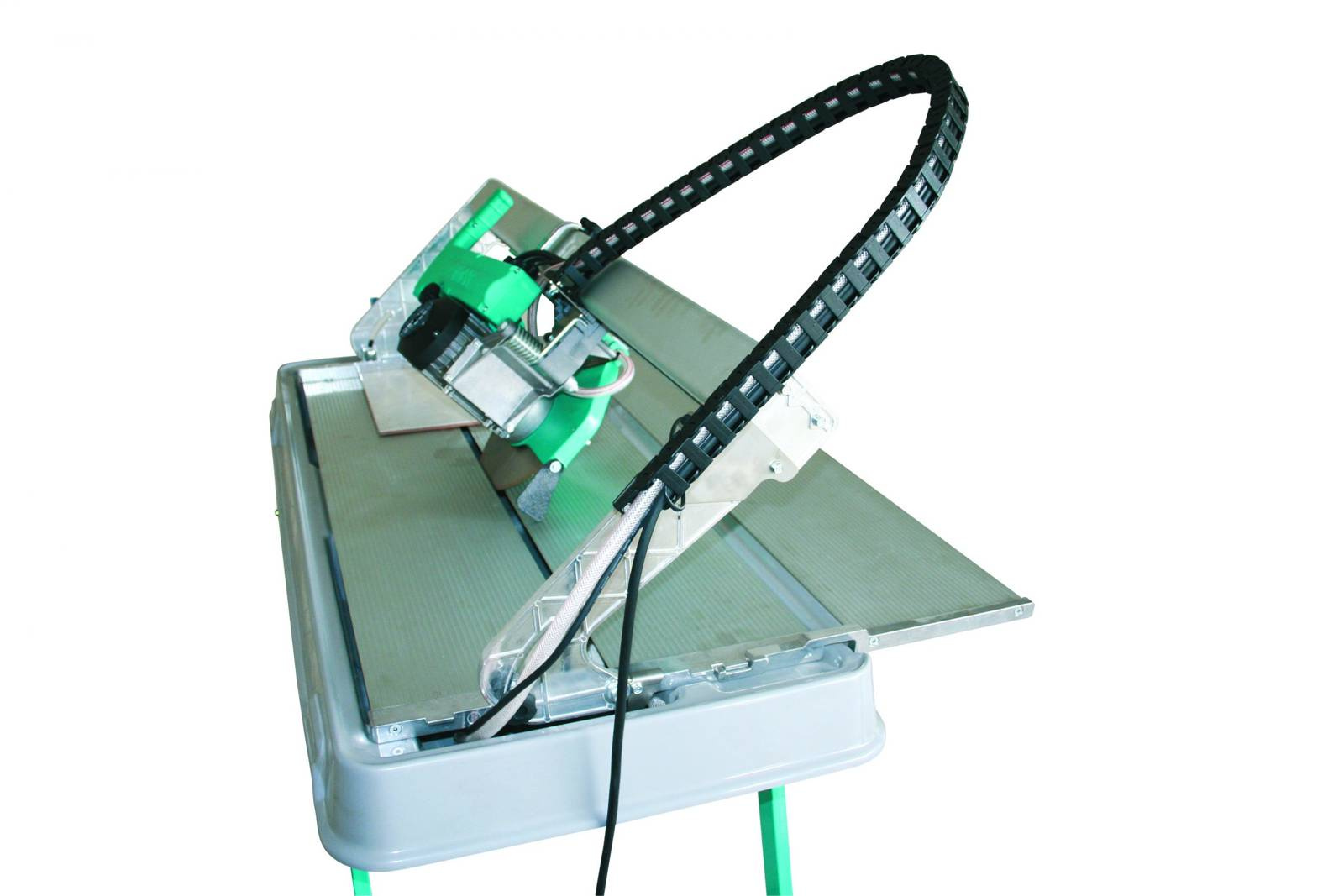 NADAJĄCA SIĘ DO CIĘCIA WSZELAKICH MATERIAŁÓW DIAMENTOWA TARCZA, PROWADZONA JEST IDEALNIE PROSTO NA OŚMIU TECHNOPOLIMEROWYCH ROLKACH. ALUMINIOWA SUWNICA UMOŻLIWIA CIĘCIA OD PROSTOPADŁEGO ∝ 90° DO UKOŚNEGO 45° PRZY PŁYNNEJ REGULACJI STOPNIA NACHYLENIA. PRZECINARKA WYPOSAŻONA W SYSTEM ELIMINACJĄ PĘKAJĄCEJ POWIERZCHNI.