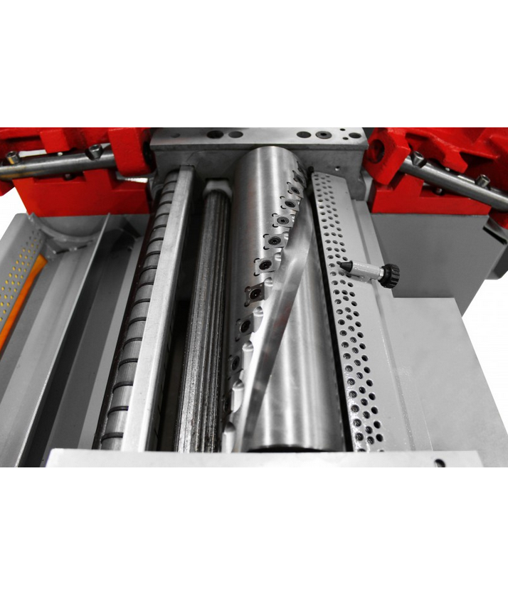 MASZYNA POZWALA NA UZYSKANIE DOSKONAŁEJ POWIERZCHNI OBRABIANEGO MATERIAŁU, A DZIĘKI NOWEJ TECHNOLOGII JEST WYDAJNIEJSZA I CICHSZA OD TRADYCYJNYCH OBRABIAREK Z NOŻAMI PROSTYMI.