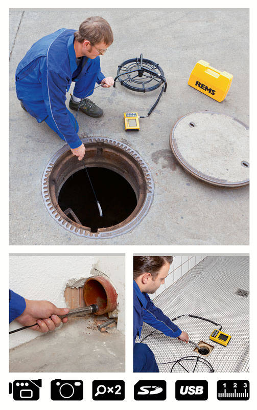 MOBILNY, PORĘCZNY WIZYJNY SYSTEM KONTROLI DO NIEDROGICH INSPEKCJI I ANALIZY USZKODZEŃ RUR. KANAŁÓW, KOMINÓW I INNYCH PUSTYCH PRZESTRZENI. Z ELEKTRONICZNYM ZLICZANIEM METRÓW. TAKŻE DO INSPEKCJI PO CZYSZCZENIU RUR I DO ODBIORU NOWYCH I INSTALACJI I NAPRAW. DOKUMENTACJA ZDJĘĆ I FILMÓW NA KARCIE SD. DO ZASILANIA Z AKUMULATORA LUB Z SIECI.