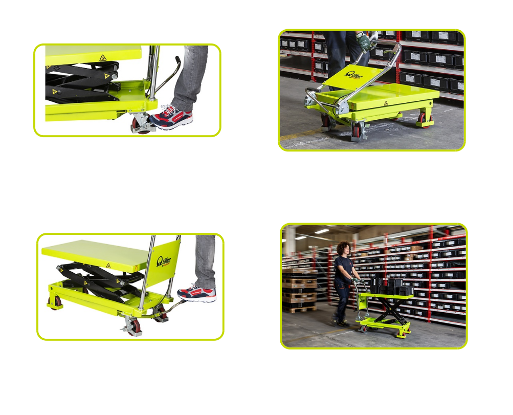 PODNOŚNIK NOŻYCOWY Z POMPĄ HYDRAULICZNĄ, STEROWANĄ NOŻNIE TO IDEALNE NARZĘDZIE DO RÓŻNYCH OPERACJI PODNOSZENIA I ZAŁADUNKU ORAZ DO UŻYTKU JAKO "STANOWISKO PRACY" W CELU ZAPEWNIENIA LEPSZYCH WARUNKÓW ERGONOMICZNYCH WRAZ Z POPRAWĄ WYDAJNOŚCI.