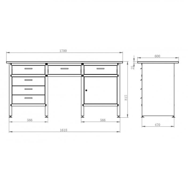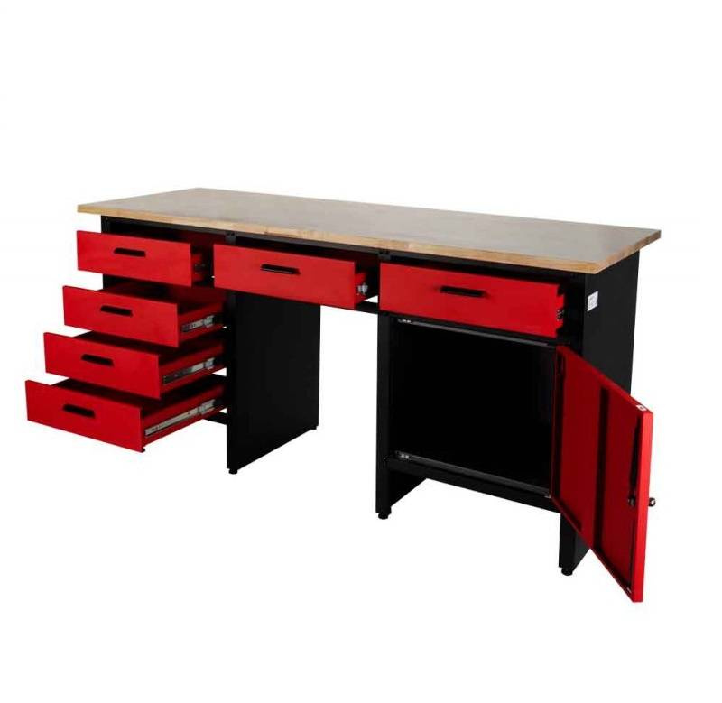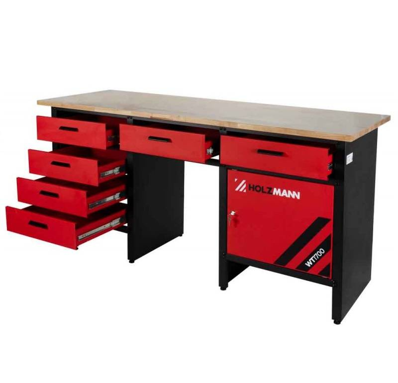 STÓŁ WARSZTATOWY HOLZMANN WT1700 Z 6 SZUFLADAMI I SZAFKĄ ORAZ DREWNIANYM BLATEM O GRUBOŚCI 25 MM IDEALNIE NADAJE SIĘ DO WARSZTATU. DUŻA ILOŚĆ MIEJSCA DO PRZECHOWYWANIA, DUŻA POWIERZCHNIA BLATU ROBOCZEGO ORAZ NÓŻKI Z REGULACJĄ DOPEŁNIAJĄ PRODUKT.