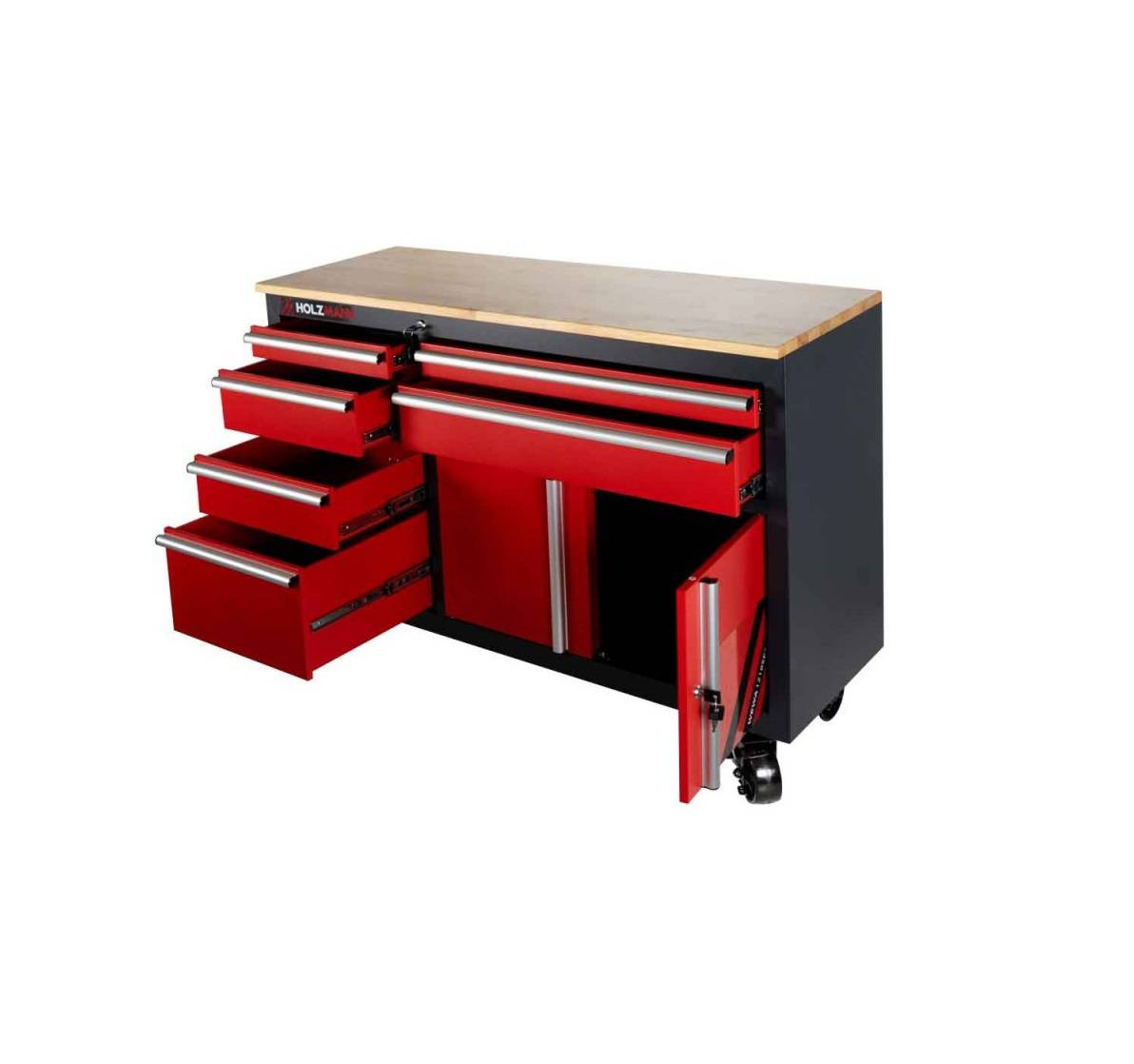 ZESTAW STÓŁ WARSZTATOWY ORAZ SZAFKA NARZĘDZIOWA HOLZMANN ZAWIERA SOLIDNY STÓŁ WARSZTATOWY ORAZ SZAFKĘ Z 6 SZUFLADAMI, SZAFKĄ I DREWNIANYM BLATEM. SZAFKA MOŻE BYĆ PRZECHOWYWANA POD STOŁEM WARSZTATOWYM, JEST ZAMYKANA ORAZ POSIADA DWA KOŁA OBROTOWE Z HAMULCAMI.