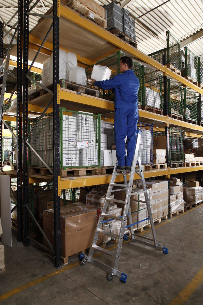 - ŁATWE PRZEMIESZCZANIE DRABINY DZIĘKI DODATKOWYM KÓŁKOM (ROLLSTOP-SYSTEM);