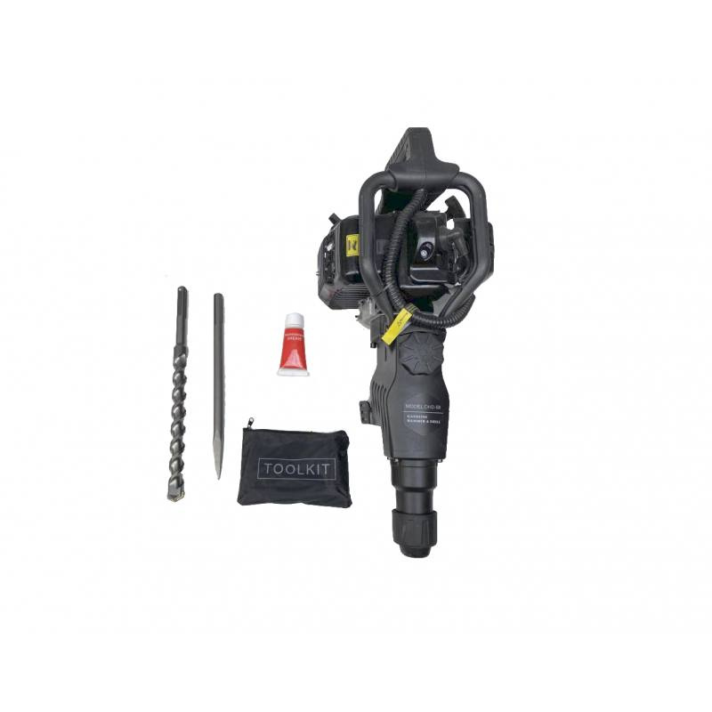 SPALINOWY MŁOT UDAROWO-OBROTOWY DHD-58 TO URZĄDZENIE, KTÓRE MOŻE BYĆ WYKORZYSTANE W MIEJSCACH BEZ DOSTĘPU DO SIECI ENERGETYCZNEJ ELIMINUJE TEŻ KONIECZNOŚCI ZASTOSOWANIA AGREGATU PRĄDOTWÓRCZEGO.