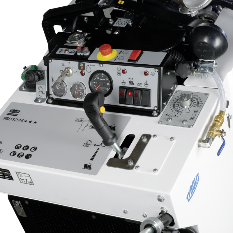 PIŁA DO CIĘCIA NAWIERZCHNI Z MOCNYM I EKONOMICZNYM, ZAMONTOWANYM WZDŁUŻNIE SILNIKIEM DIESLA KUBOTA O MOCY 74 KM. WAŁ NAPĘDOWY TARCZY TNĄCEJ ZANURZONY JEST W OLEJU CO MINIMALIZUJE PRACE KONSERWACYJNE ORAZ CHRONI PASEK PRZED OSADEM. AUTOMATYCZNA FUNKCJA WŁĄCZANIA / WYŁĄCZANIA WODY UPRASZCZA OBSŁUGĘ I ZMNIEJSZA JEJ ZUŻYCIE. HYDRAULICZNY UKŁAD NAPĘDU UKŁADU JEZDNEGO ORAZ REGULOWANE HYDRAULICZNIE UCHWYTY OSZCZĘDZAJĄ SIŁĘ I CZAS OPERATORA.