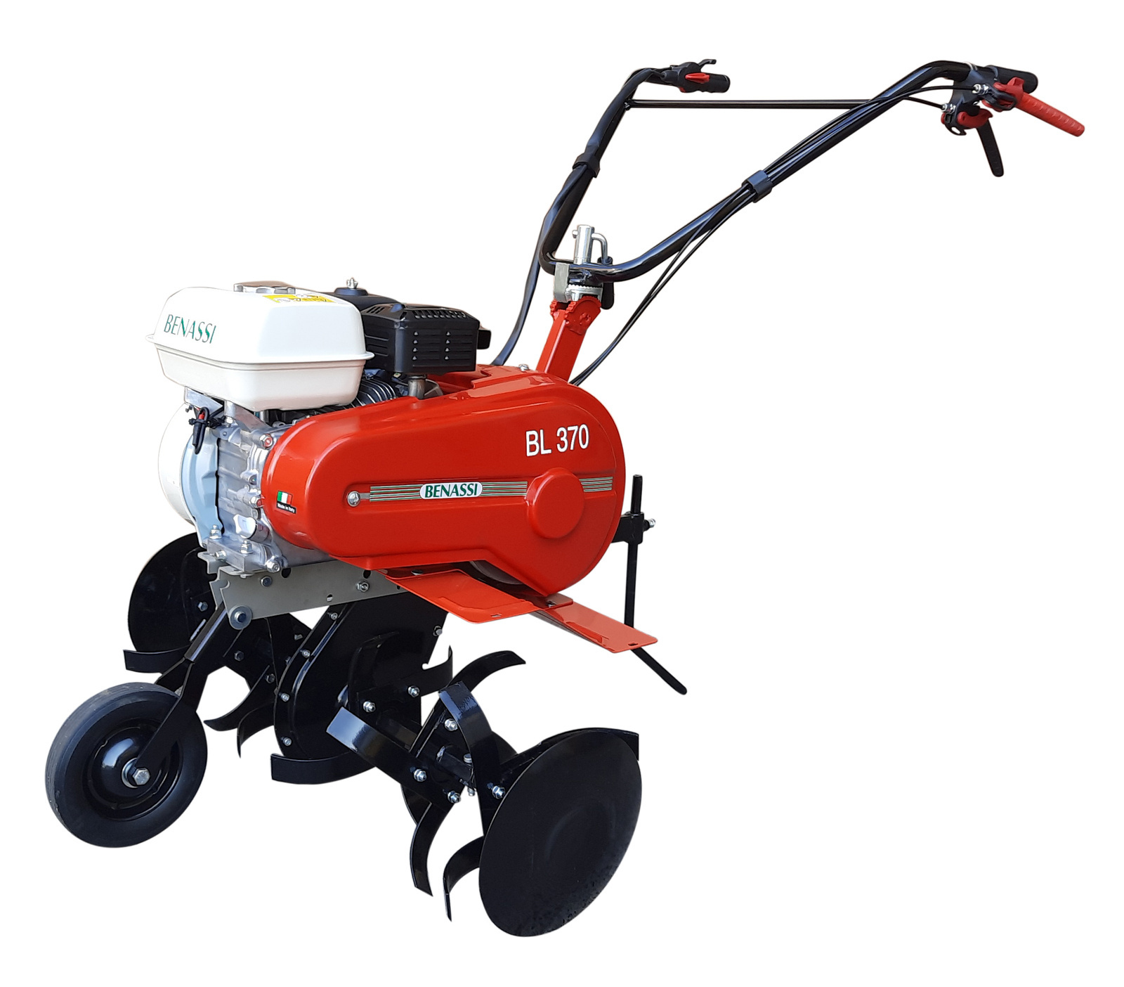 SPALINOWA GLEBOGRYZARKA MODEL BL 370 H RENOMOWANEGO PRODUCENTA PROFESJONALNYCH URZĄDZEŃ OGRODNICZYCH FIRMY BENASSI TO URZĄDZENIE, KTÓRE CECHUJE SIĘ WYSOKĄ JAKOŚCIĄ WYKONANIA I MOCNYM SILNIKIEM HONDA GP160. SŁUŻY DO SPULCHNIANIA I MECHANICZNEGO PRZEWRACANIA GLEBY, ODCHWASZCZANIA I MIESZANIA NAWOZÓW Z ZIEMIĄ. DZIĘKI SWOJEJ KOMPAKTOWEJ BUDOWIE POZWALA NA SZYBKĄ I PRECYZYJNĄ PRACĘ W MAŁO DOSTĘPNYCH MIEJSCACH. SZEROKOŚĆ ROBOCZA TO 80CM, GLEBOGRYZARKA JEST WYPOSAŻONA W DWA BIEGI PRZÓD-TYŁ UŁATWIAJĄCE PORUSZANIE I PRACĘ, ZAŚ REGULOWANA KIEROWNICA ZAPEWNIA ERGONOMICZNE I KOMFORTOWE WARUNKI PRACY. KULTYWATORY I TALERZE WYKONANE SĄ Z WYSOKIEJ JAKOŚCI MATERIAŁÓW, CO GWARANTUJE DUŻĄ TRWAŁOŚĆ I NIEZAWODNOŚĆ.