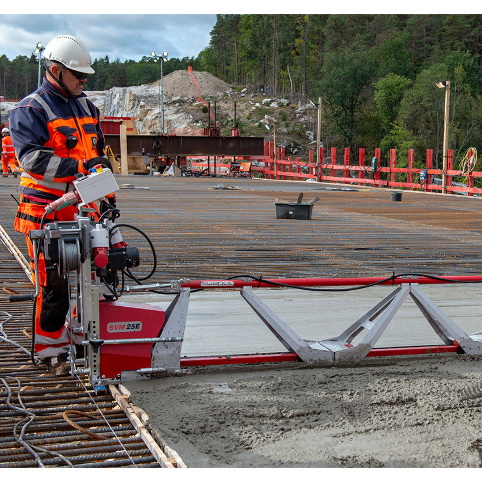 MODUŁOWA LISTWA SVM 25 BT 90 Z NAPĘDEM ELEKTRYCZNYM ZOSTAŁA ZAPROJEKTOWANA DO PRACY NA POSADZKACH O SZEROKOŚCI DO 25 M ORAZ NA PASACH I MOSTACH WYMAGAJĄCYCH ZAGĘSZCZENIA, WYRÓWNANIA I WYKOŃCZENIA ŚWIEŻO WYLANEJ MIESZANKI BETONOWEJ. ŁATWY MONTAŻ I WIELE KONFIGURACJI ORAZ AKCESORIÓW CZYNI LISTWĘ SVM MASZYNĄ O WSZECHSTRONNYM ZASTOSOWANIU.