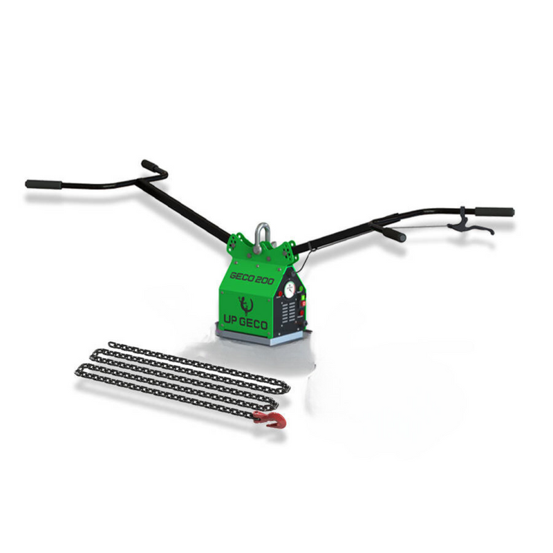 GECO 200 TO CHWYTAK BRUKARSKI DO PRZENOSZENIA, PODNOSZENIA I UKŁADANIA PŁYT CHODNIKOWYCH, PŁYT TARASOWYCH, PŁYT GRANITOWYCH, PŁYT Z GRESU PORCELANOWEGO, KRAWĘŻNIKÓW ORAZ PREFABRYKATÓW O WADZE NIE PRZEKRACZAJĄCEJ 200 KILOGRAMÓW, CHWYTAK PODCIŚNIENIOWY GECO 200 POWSTAŁ Z MYŚLĄ O EFEKTYWNYM I BEZPIECZNYM PRZENOSZENIU PŁYT Z MATERIAŁÓW NAWET O DUŻEJ POROWATOŚCI.