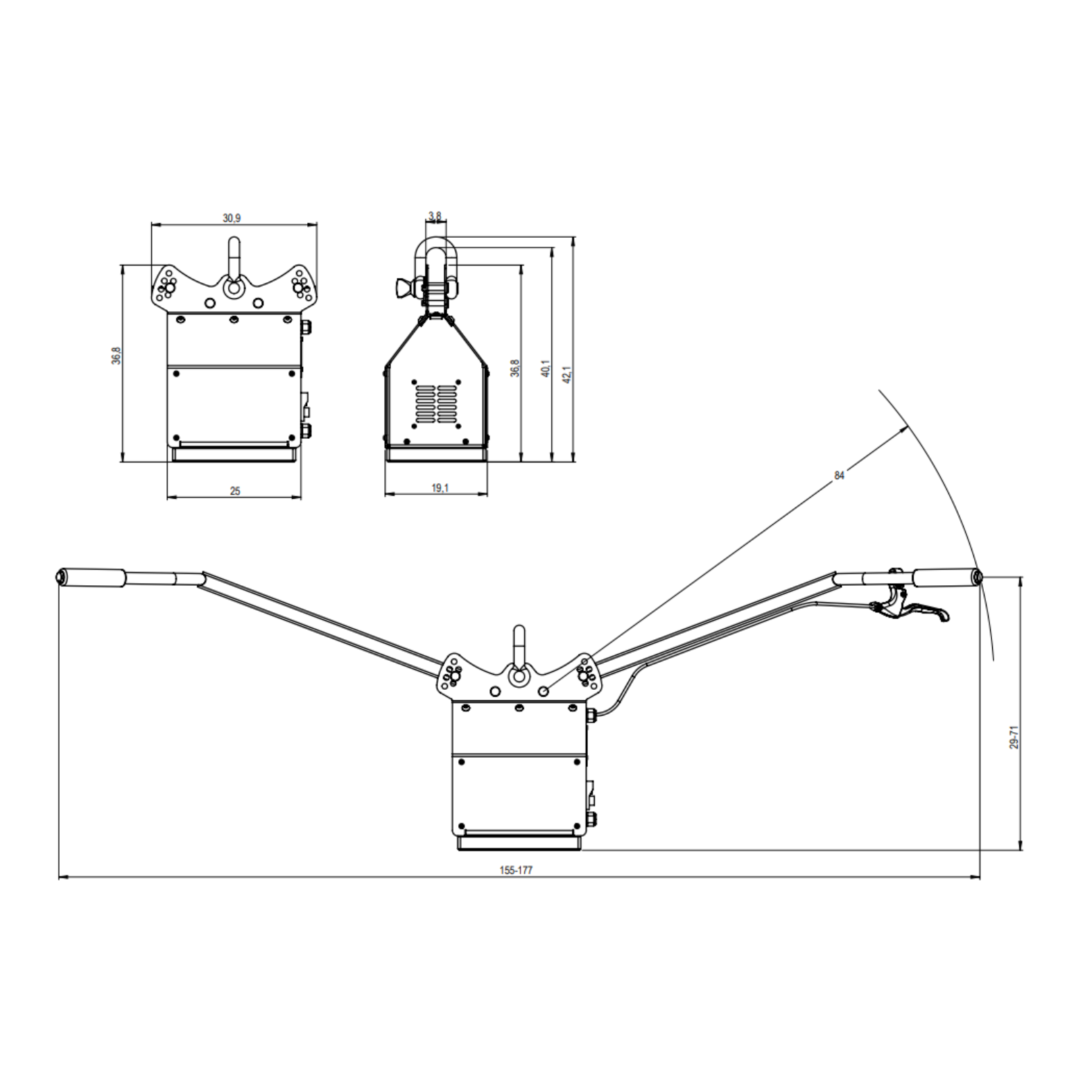 - NIEZALEŻNA REGULACJA KAŻDEGO Z RAMION CHWYTU UMOŻLIWIA ERGONOMICZNĄ PRACE OPERATORÓW O ROŻNYM WZROŚCIE ORAZ PODCZAS PRACY NA SCHODACH;