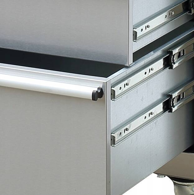 - JEDNĄ Z GŁÓWNYCH ZALET SZAFKI NARZĘDZIOWEJ 720S JEST JEJ SOLIDNA KONSTRUKCJA WYKONANA ZE STALI NIERDZEWNEJ. DZIĘKI TEMU MATERIAŁOWI SZAFKA JEST NIE TYLKO ODPORNA NA KOROZJĘ, ALE TAKŻE WYJĄTKOWO WYTRZYMAŁA, CO GWARANTUJE DŁUGOTRWAŁE UŻYTKOWANIE.