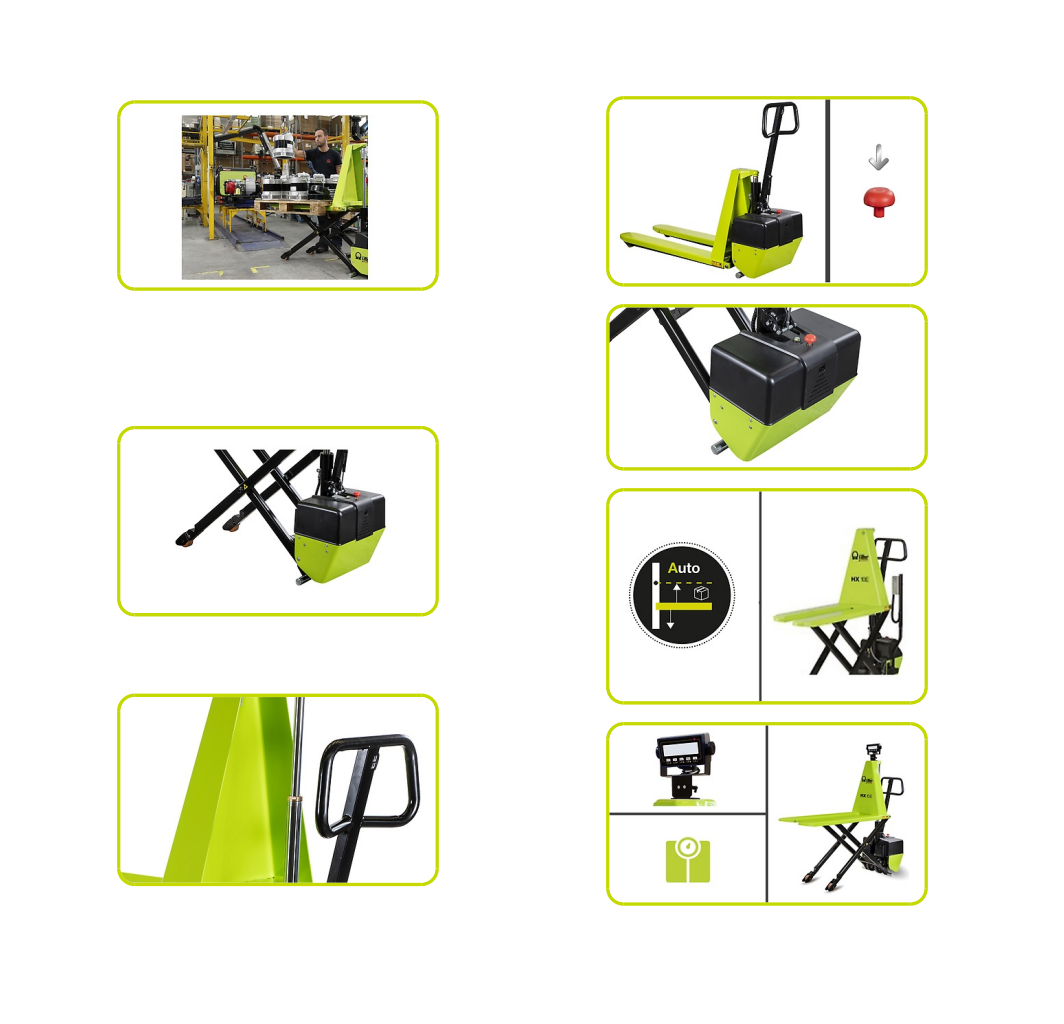PODNOŚNIK NOŻYCOWY HX 10 E UMOŻLIWIA ŁATWE I LEKKIE PODNOSZENIE NA WYSOKOŚĆ 800 MM DZIĘKI NIEZAWODNEMU SILNIKOWI ELEKTRYCZNEMU I WYDAJNEMU AKUMULATOROWI. BATERIĘ MOŻNA ŁATWO I WYGODNIE NAŁADOWAĆ ZA POMOCĄ WBUDOWANEJ ŁADOWARKI I MONITOROWAĆ ZA POMOCĄ STANDARDOWEGO WSKAŹNIKA STANU BATERII.