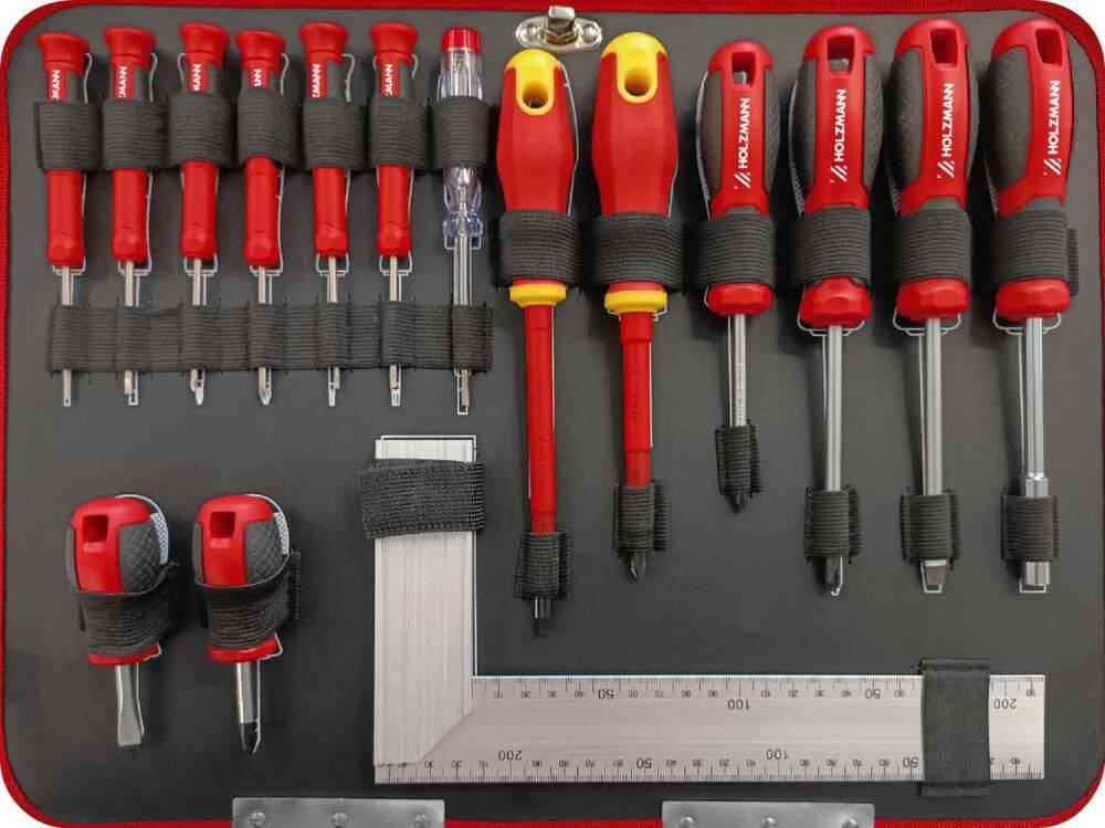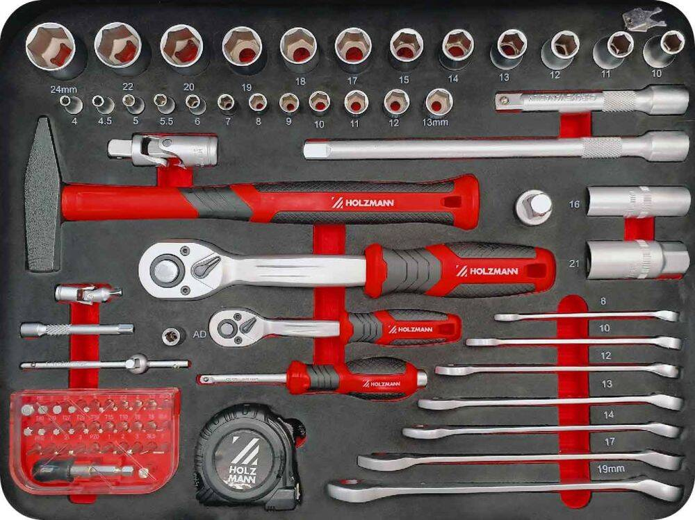 WALIZKA NARZĘDZIOWA HOLZMANN WZK167PRO Z WYSUWANĄ RĄCZKĄ / FUNKCJĄ WÓZKA I 167-CZĘŚCIOWYM ZESTAWEM NARZĘDZI UPORZĄDKOWANYM I PRAWIDŁOWO UŁOŻONYM W 4 WARSTWACH.