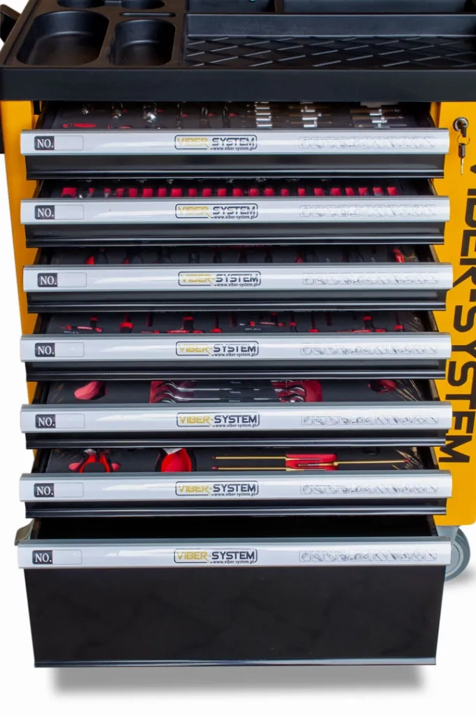 SZAFKA NARZĘDZIOWA SERWISOWA, WÓZEK NARZĘDZIOWY VIBER-SYSTEM SZN259 Z WYPOSAŻENIEM 258 ELEMENTÓW.