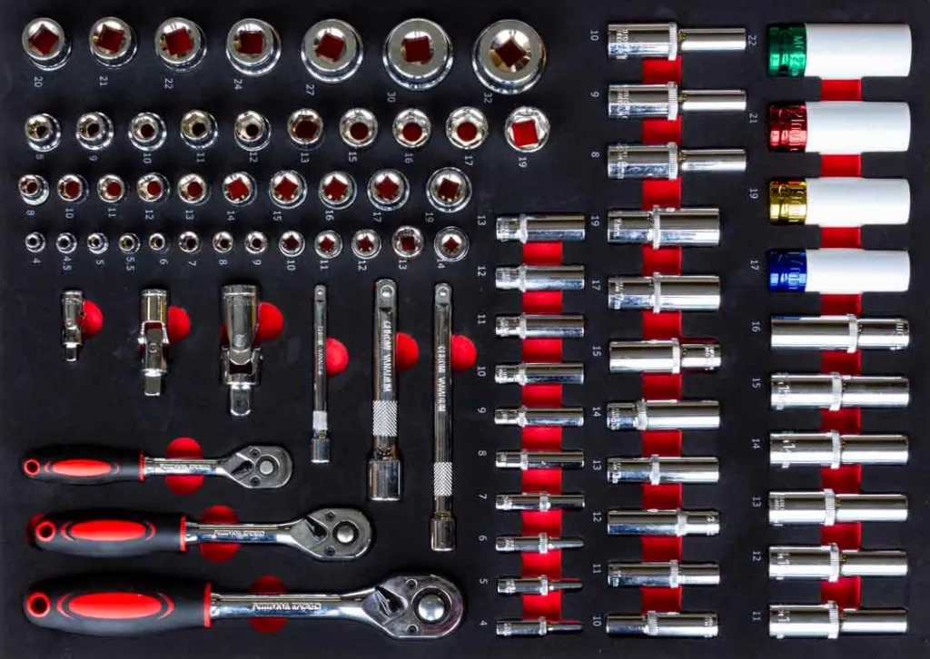 - 9 SZT. GŁĘBOKICH NASADEK 1/2"DR (STAL CHROMOWO-WANADOWA): 8, 9, 10, 11, 12, 13, 14, 15, 16 MM