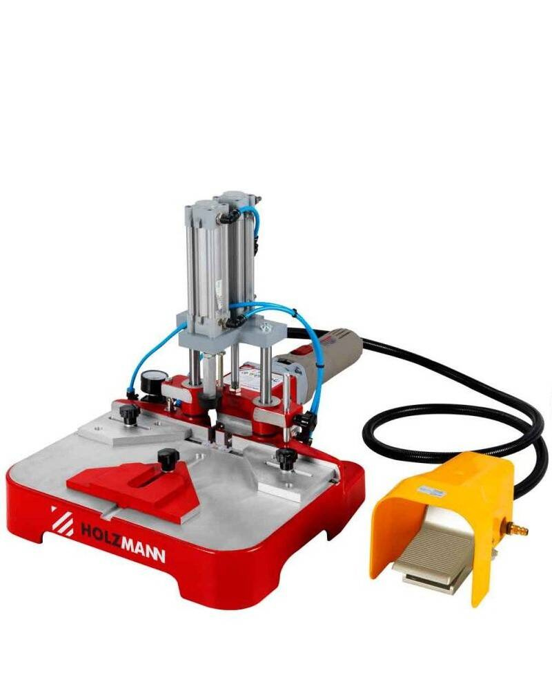 PNEUMATYCZNA FREZARKA WPUSTOWA Z DWOMA WRZECIONAMI HOLZMANN KNF2PNEU IDEALNIE NADAJE SIĘ DO WYKONYWANIA POŁĄCZEŃ Z DWOMA WPUSTAMI NA SKOK ROBOCZY.