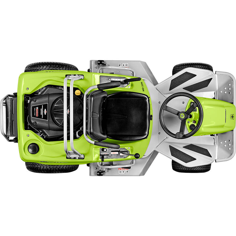 MD 22N TO KOSIARKA HYDROSTATYCZNA Z PODWÓJNĄ FUNKCJĄ AGREGATU TNĄCEGO OBSŁUGIWANEGO ZA POMOCĄ DŹWIGNI, KTÓRA POZWALA W KOMFORTOWY SPOSÓB (Z POZYCJI SIEDZĄCEJ) PRZEŁĄCZAĆ SIĘ POMIĘDZY TRYBEM MULCZOWANIA I BOCZNEGO WYRZUTU. POJAZD TEN POSIADA SPRZĘGŁO ELEKTROMAGNETYCZNE, KTÓRE DOSKONALE SPRAWDZA SIĘ PODCZAS KOSZENIA NAWET NA ZBOCZACH ORAZ BLOKADĘ DYFERENCJAŁU. BARDZO WYDAJNY 18-KONNY SILNIK, ŁATWOŚĆ OBSŁUGI MASZYNY, PŁYNNY UKŁAD STEROWANIA ORAZ WYSOKA PRĘDKOŚĆ PRACY CZYNIĄ Z MD 22N SZYBKĄ I EFEKTYWNĄ KOSIARKĘ (PRĘDKOŚĆ MAKSYMALNA TO 10,5 KM/H), KTÓREJ UŻYTKOWANIE TO CZYSTA PRZYJEMNOŚĆ.
