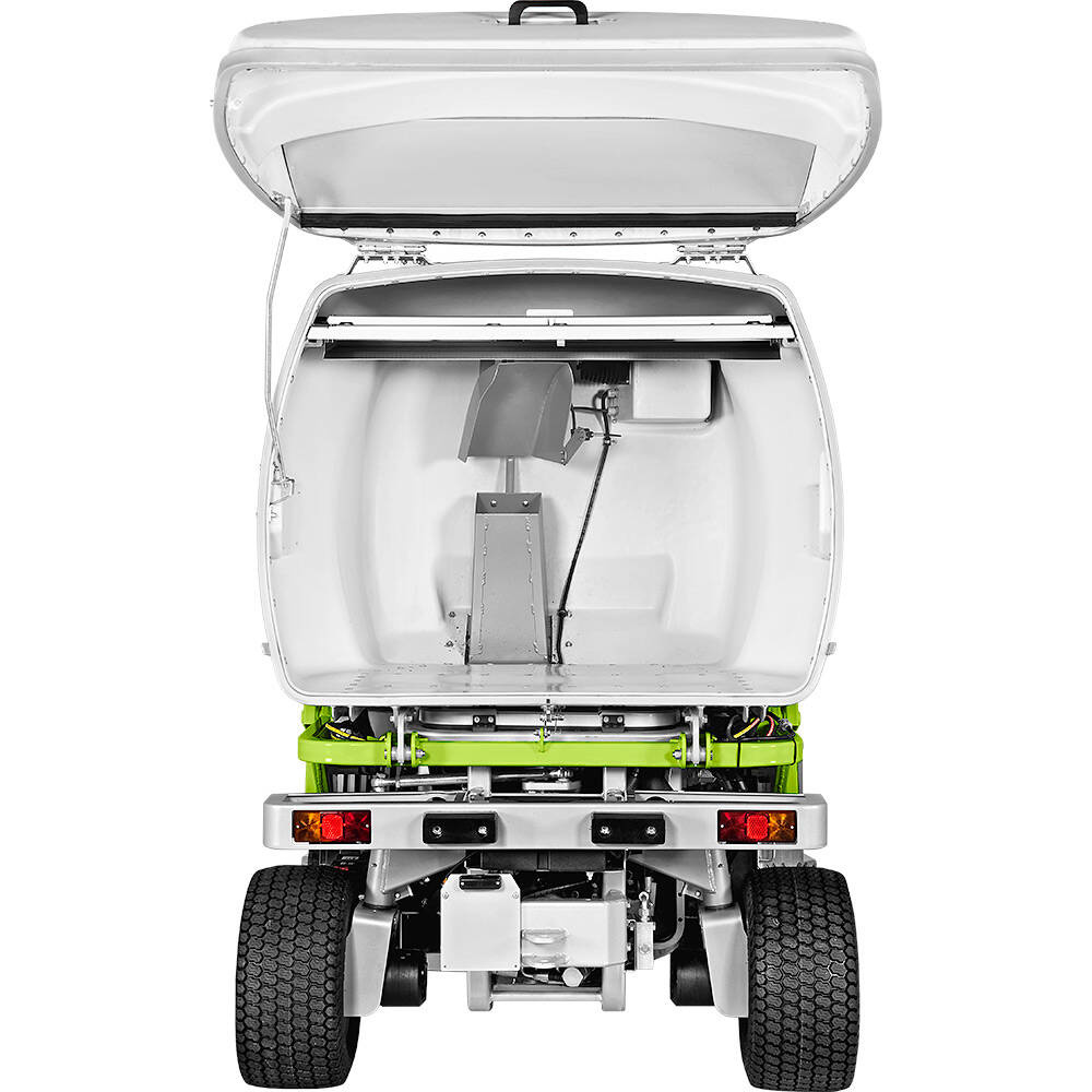 - REGULACJA WYSOKOŚCI KOSZENIA (ZAKRES 25-110 MM) OBEJMUJE 8 POZIOMÓW, A WYDAJNOŚĆ KOSZENIA WSPOMAGANA JEST PRZEZ 400-MILIMETROWĄ TURBINĘ Z 5 ŁOPATAMI, KTÓRA UMIESZCZONA JEST WEWNĄTRZ POJAZDU I POZWALA NA ZBIERANIE NAWET BARDZO CIĘŻKIEJ, MOKREJ TRAWY;