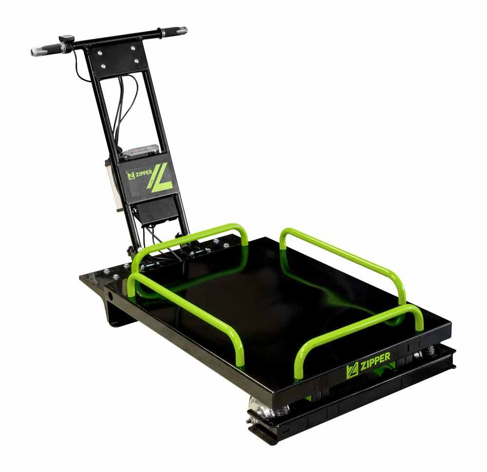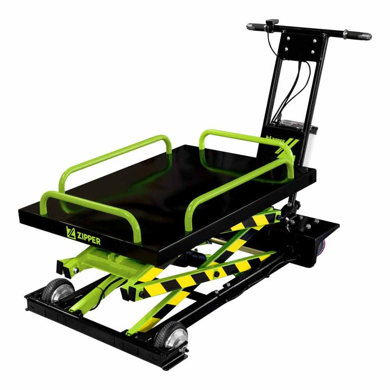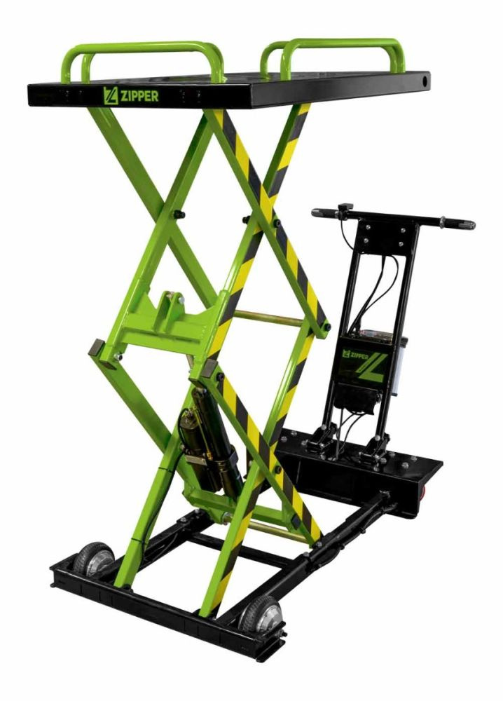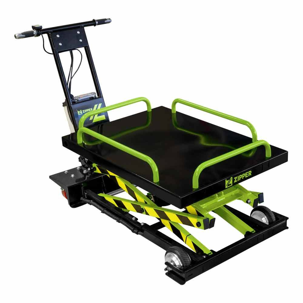 ELEKTRYCZNY PODNOŚNIK NOŻYCOWY ZIPPER ZI-SHW300 ZASILANY AKUMULATOREM ZIPPER ZI-BTR40V6AH UMOŻLIWIAJĄCY JAZDĘ STOŁU Z PRĘDKOŚCIA DO 4KM/H