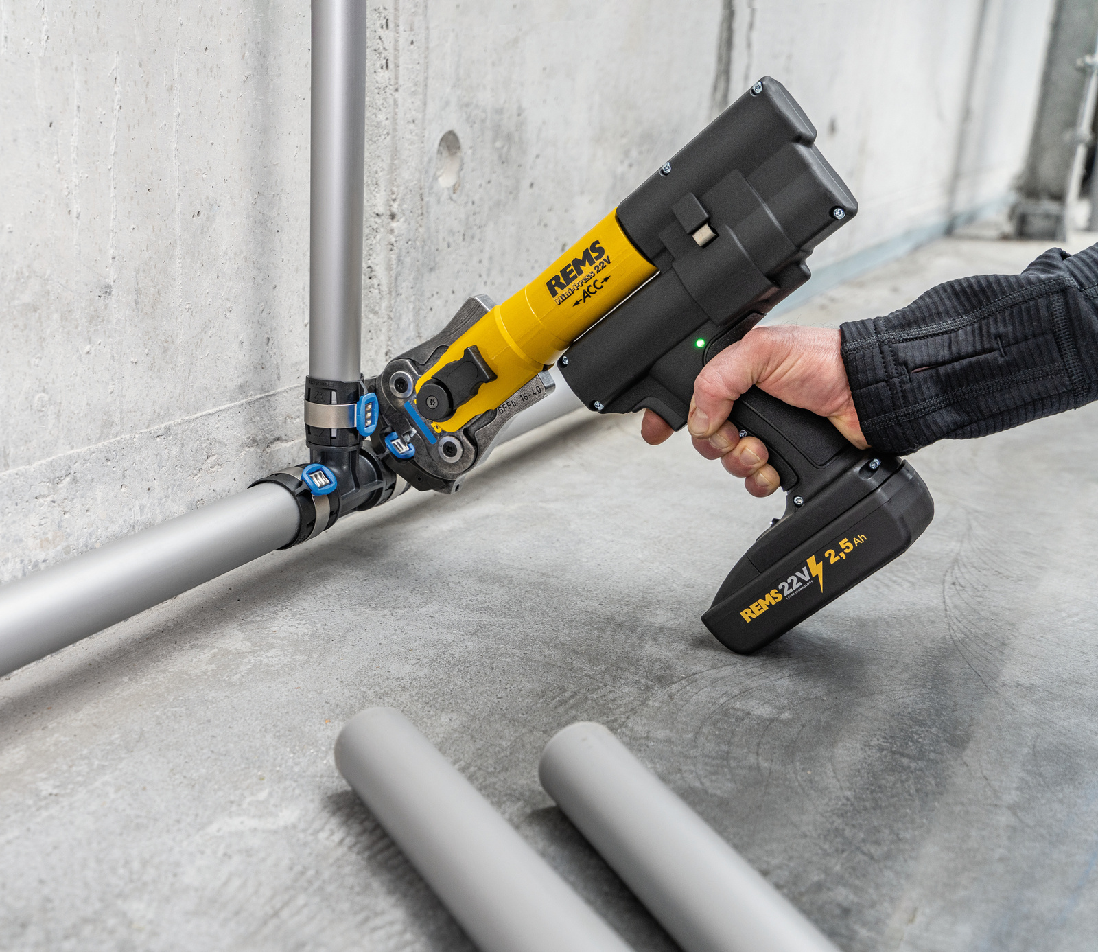 KODOWANIE KOLORAMI DLA SZYBKIEGO I ŁATWEGO PRZYPORZĄDKOWANIA WŁAŚCIWYCH CĘGÓW DO KSZTAŁTKI ZACISKOWEJ. WYCIĘCIA W SZCZĘKACH ZACISKOWYCH PEWNIE PROWADZĄ PŁYTKI ŁĄCZĄCE, ZAPEWNIAJĄC ZACISKANIE BEZ PRZESUNIĘĆ (PATENT EP 2 347 862). NAPĘDZANE PRZEZ WSZYSTKIE PRASY PROMIENIOWE REMS 22 KN (MINI). PRZECZYTAĆ I PRZESTRZEGAĆ INSTRUKCJI UŻYTKOWANIA I MONTAŻU DOSTARCZONYCH PRZEZ DOSTAWCĘ/PRODUCENTA SYSTEMU.