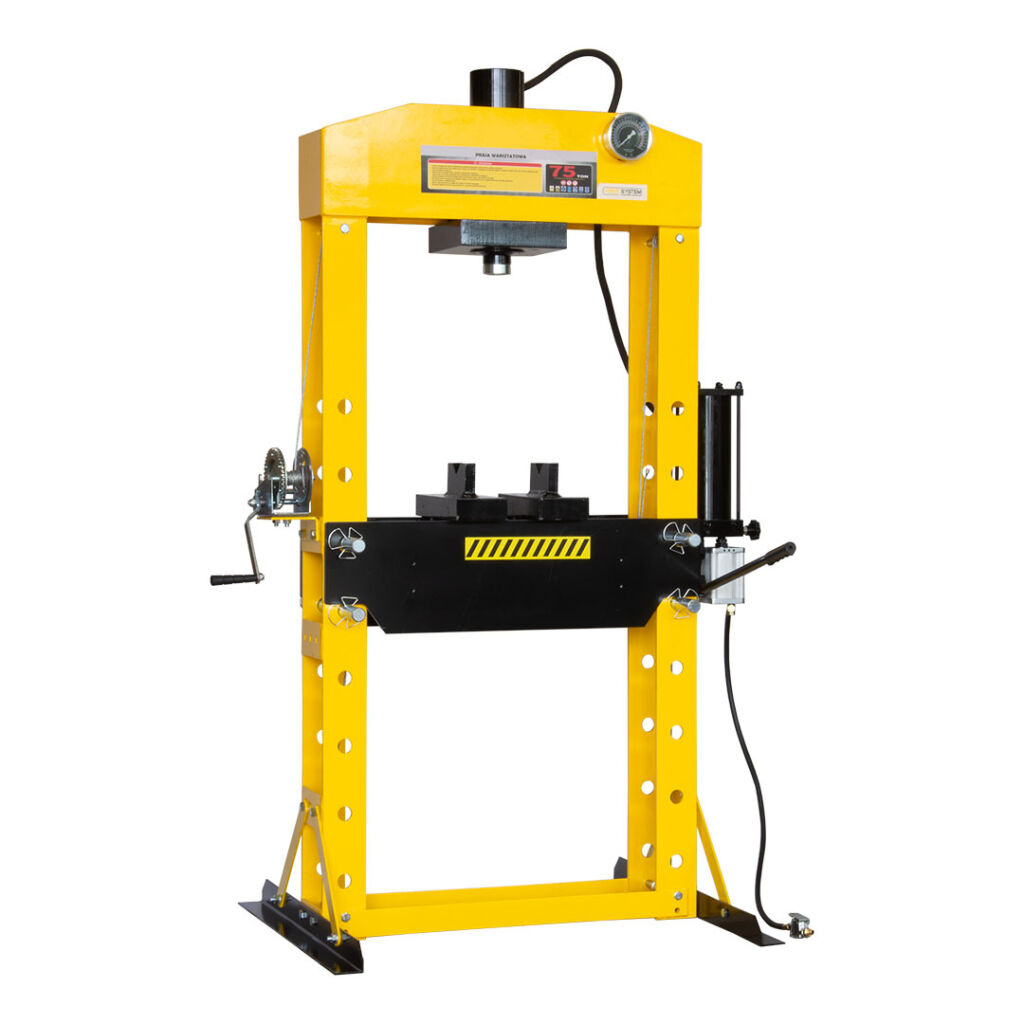 VIBER-SYSTEM WP75 TO NIEZAWODNA PRASA HYDRAULICZNA O SILE 75 TON, STWORZONA Z MYŚLĄ O BARDZIEJ WYMAGAJĄCYCH PRACACH MONTAŻOWYCH, NAPRAWCZYCH I PRODUKCYJNYCH. JEJ SPAWANA STALOWA KONSTRUKCJA ZAPEWNIA PEŁNĄ STABILNOŚĆ I DŁUGOWIECZNOŚĆ W KAŻDYCH WARUNKACH WARSZTATOWYCH.