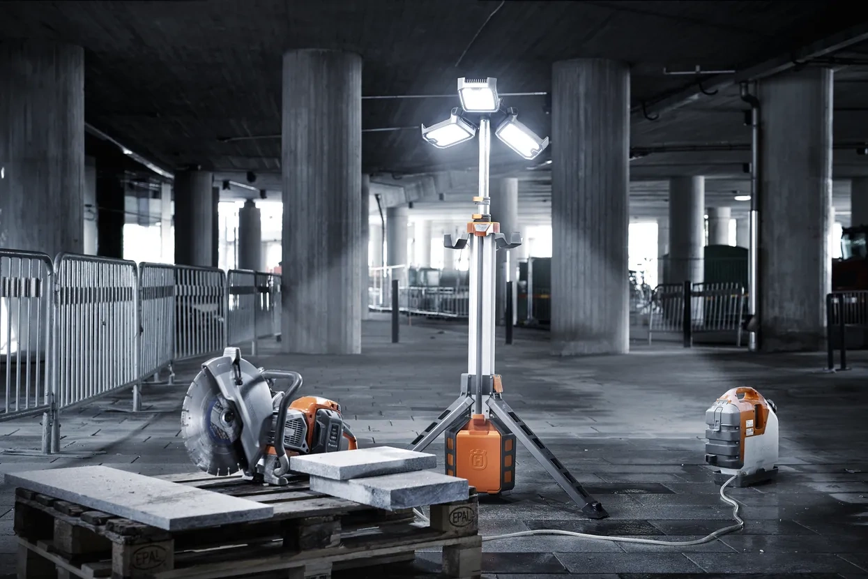HUSQVARNA WL 24 PACE TO LAMPA WIEŻOWA Z ZASILANIEM AKUMULATOROWYM, KTÓRĄ MOŻNA ŁATWO PRZENOSIĆ I USTAWIAĆ ZA POMOCĄ ZINTEGROWANEGO STATYWU. WYDAJNA I PRZENOŚNA, ZAPEWNIA DO 24 000 LUMENÓW I DOSKONALE NADAJE SIĘ DO OŚWIETLANIA WIĘKSZYCH OBSZARÓW W POMIESZCZENIACH I NA ZEWNĄTRZ.