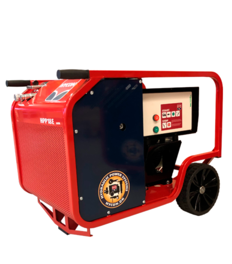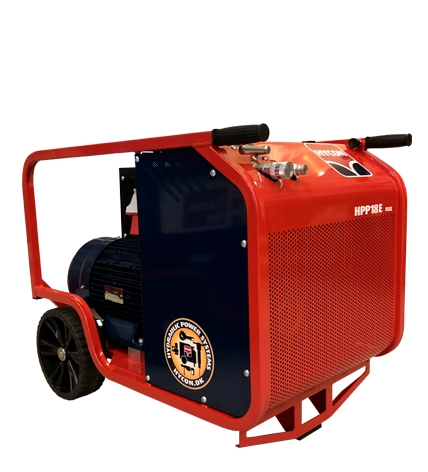 AGREGAT HYDRAULICZNE HYCON HPP18E (40) TO DOSKONAŁE ŹRÓDŁO NAPĘDU SZEROKIEJ GAMY RĘCZNYCH NARZĘDZI HYDRAULICZNYCH. WYPOSAŻONY W ELEKTRYCZNY SILNIK O MOCY 11KW ORAZ ZĘBATA POMPĘ HYDRAULICZNĄ, ZAPEWNIA PRZEPŁYW OLEJU 1x 40-L/MIN I MAX CIŚNIENIE 160BAR. CAŁA JEDNOSTKA ZABEZPIECZONA JEST RAMĄ DOSKONALE CHRONIĄCA PRZED USZKODZENIAMI. AGREGAT POSIADA KLASĘ BEZPIECZEŃSTWA IP54 DZIĘKI CZEMU MOŻE PRACOWAĆ NA ZEWNĄTRZ.