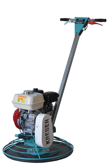 ZACIERACZKA TALERZOWA K–600 BT MARKI KREBER TO SOLIDNE I SPRAWDZONE ROZWIĄZANIE W BRANŻY POSADZKARSKIEJ. PRZEZNACZONA JEST DO ZACIERANIA I WYGŁADZANIA POSADZEK BETONOWYCH W BUDOWNICTWIE MIESZKANIOWYM. DZIĘKI RUCHOMEJ DŹWIGNI STEROWNICZEJ MOŻEMY DOSTOSOWAĆ JEJ POŁOŻENIE DO WZROSTU OPERATORA CO ZAPEWNIA WIĘKSZY KOMFORT PODCZAS PRACY. POSIADA MOCNY SILNIK BENZYNOWY HONDA O MOCY 4,8 KM, WYŁĄCZNIK BEZPIECZEŃSTWA, RĘCZNY REGULATOR OBROTÓW ORAZ TALERZ ZACIERAJĄCY 600MM.